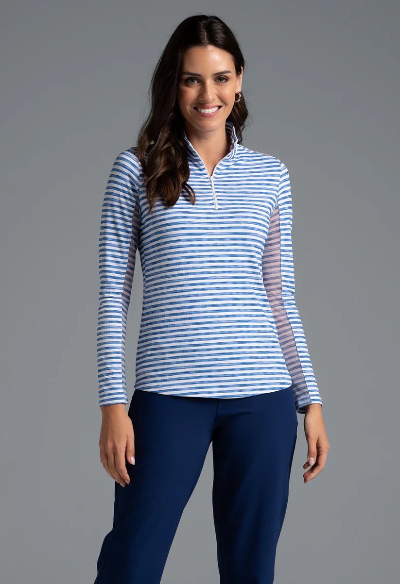 Whether you're hitting the high seas or hitting the links, the Landon Stripe Long Sleeve Mock Neck has you covered. It's a classic stripe print that performs on all fronts, featuring Iceƒil® cooling technology that lowers skin temperature up to 5 degrees. It is breathable, lightweight, moisture-wicking, anti-stink, and has UPF 50+ sun protection. Mesh underarm panels provide even further ventilation. Pair the top with a range of bottoms in coordinate colors for a complete look that'll take you from day to night.